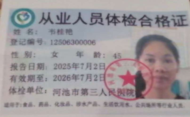 員工姓名:韋桂艷